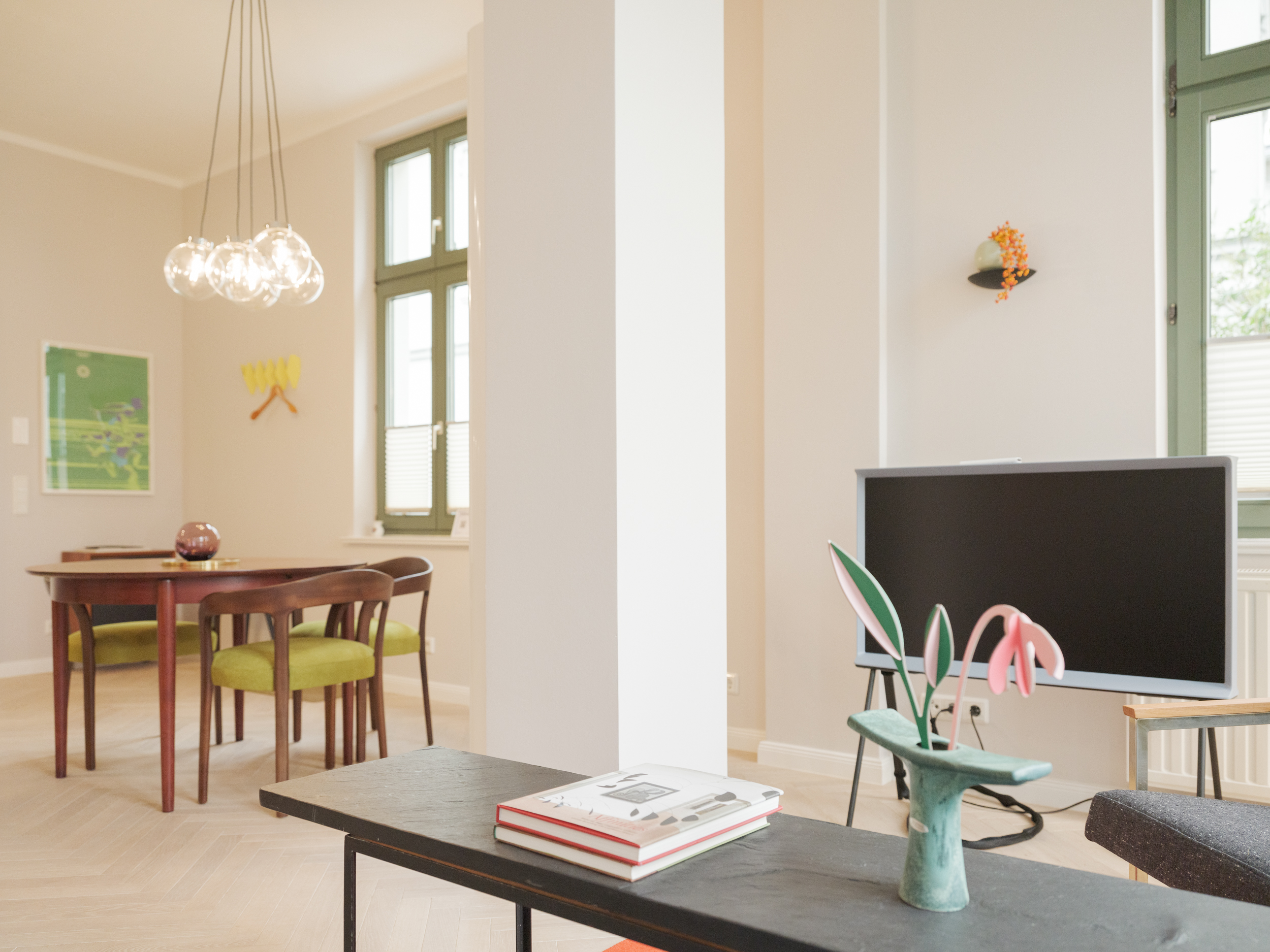 The bright apartment on the first floor, furnished with great attention to detail, is 51 m² in size and can accommodate 2 people. It features a separate, relaxing bedroom and an open-plan living/kitchen area. The kitchen is of high quality and fully equipped. The luxurious bathroom impresses with a large walk-in shower. You can end the day in comfort on the terrace. The double bed is 180×200 cm in size.